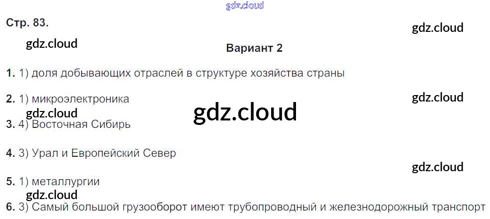 Ответ на задание вариант-2 Тетрадь-экзаменатор География за 9 (девятый) класс Барабанов Сферы 2017