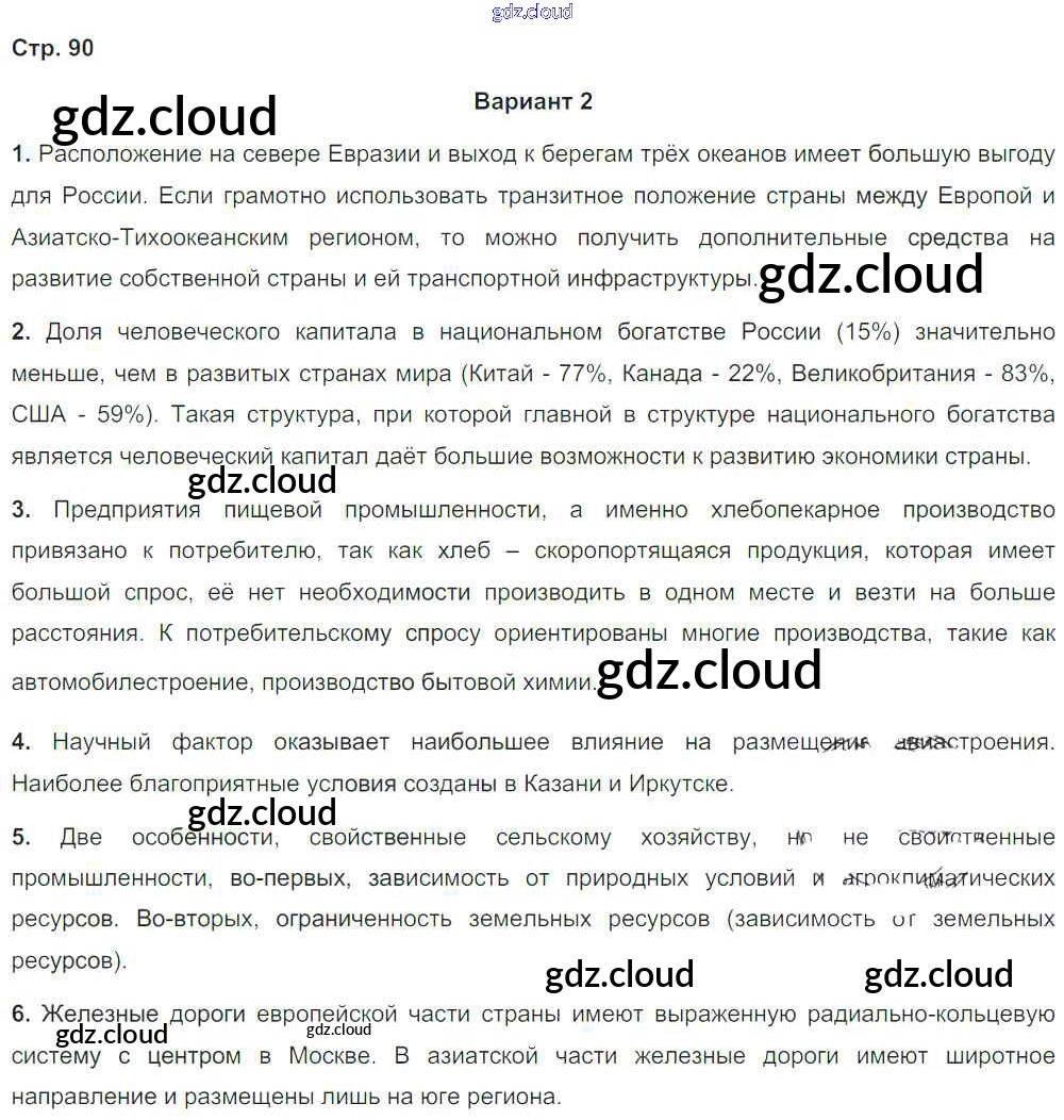 Ответ на задание вариант-2 Тетрадь-экзаменатор География за 9 (девятый) класс Барабанов Сферы 2017