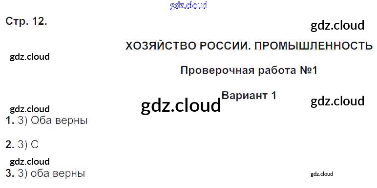 ПР-1 Ответы к теме Хозяйство России. Промышленность по Географии 9 класс Тетрадь-экзаменатор Барабанов Сферы Просвещение