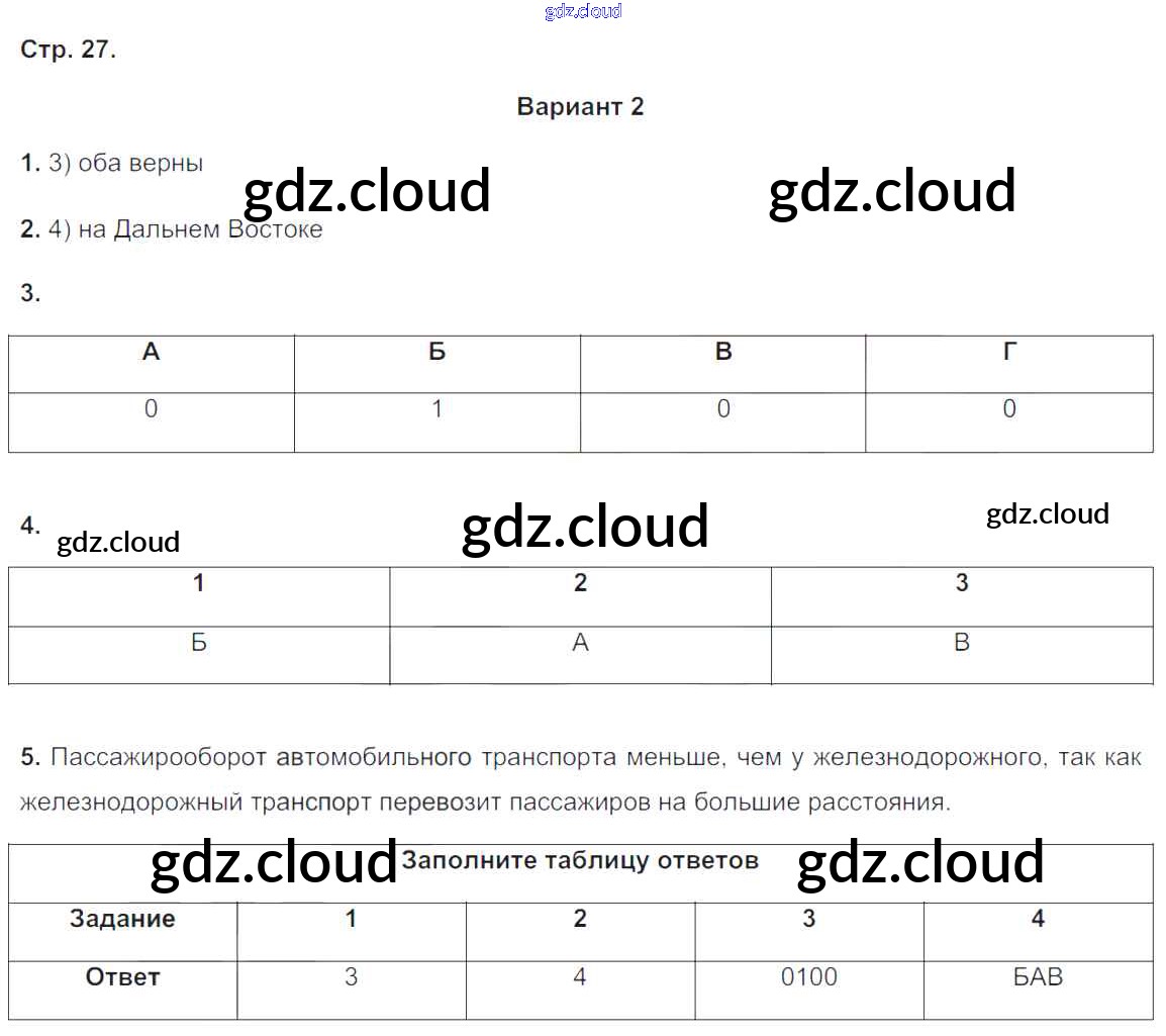 Ответ на задание вариант-2 Тетрадь-экзаменатор География за 9 (девятый) класс Барабанов Сферы 2017
