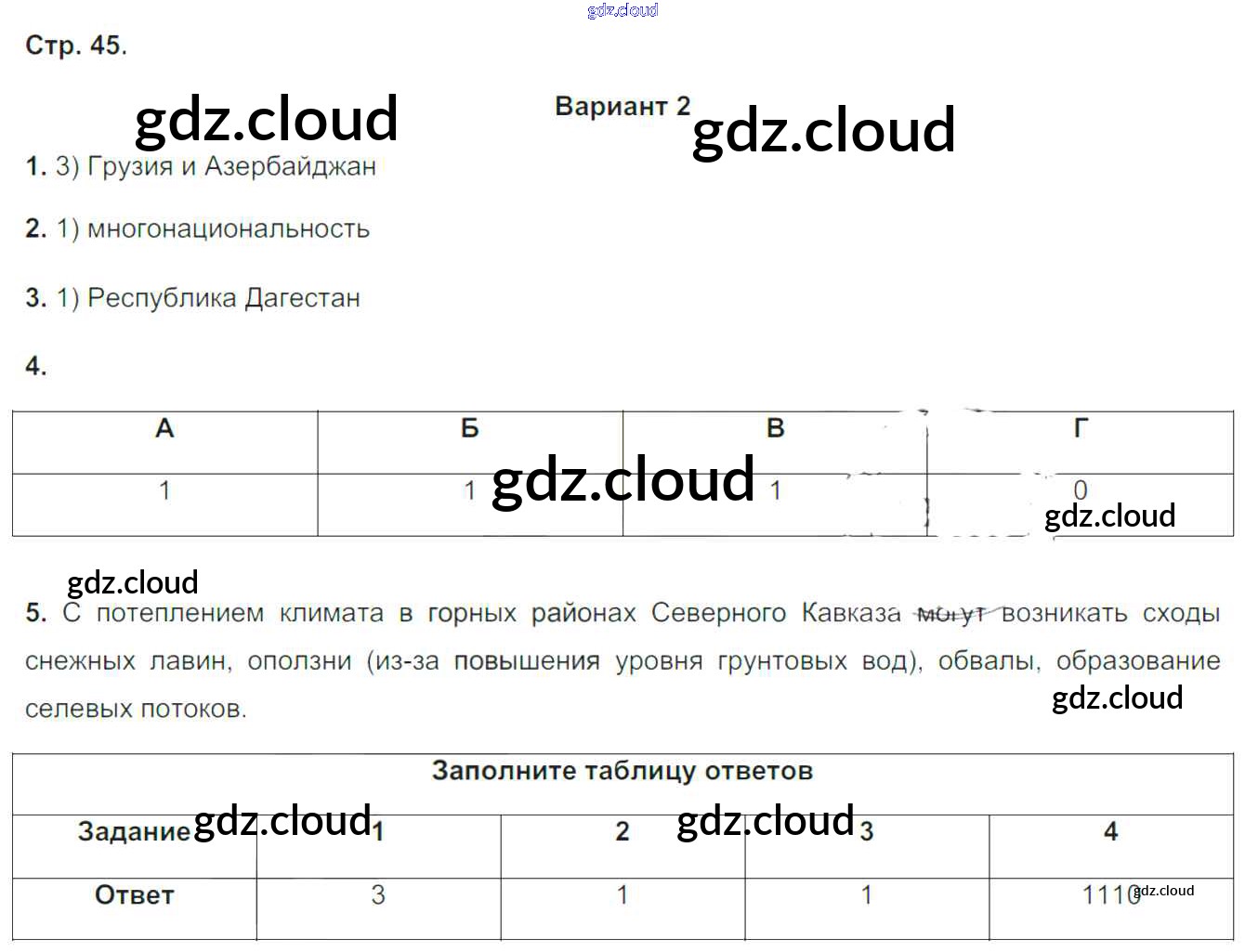 Ответ на задание вариант-2 Тетрадь-экзаменатор География за 9 (девятый) класс Барабанов Сферы 2017