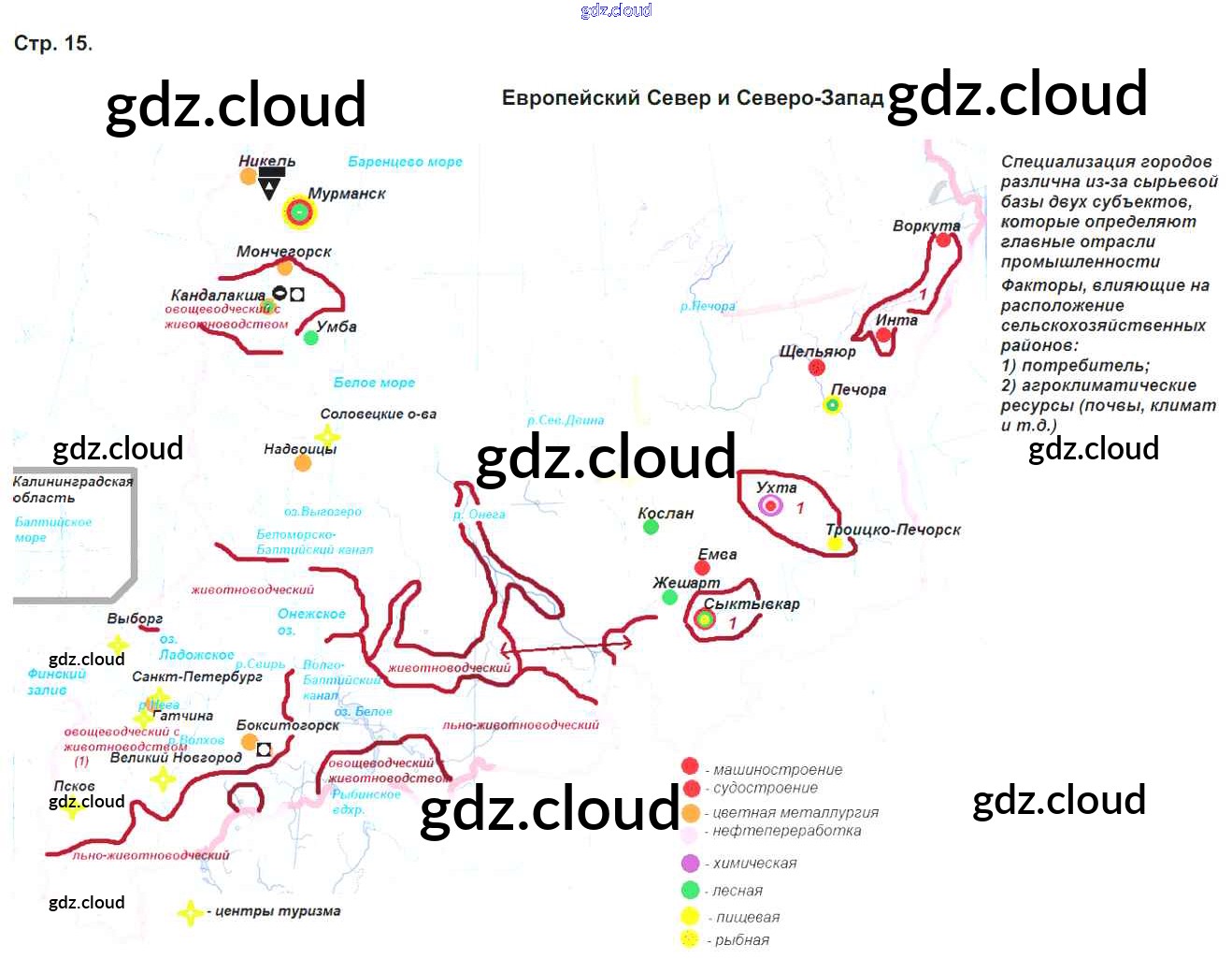 Ответ на задание стр.15. Европейский Север и Северо-Запад Контурные карты География за 9 (девятый) класс Приваловский 2020