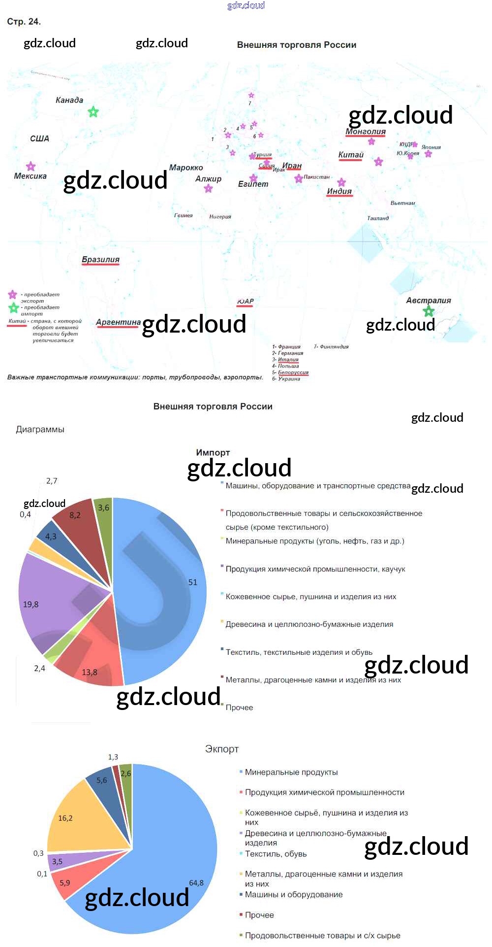 Ответ на задание стр.24. Внешняя торговля России Контурные карты География за 9 (девятый) класс Приваловский 2020