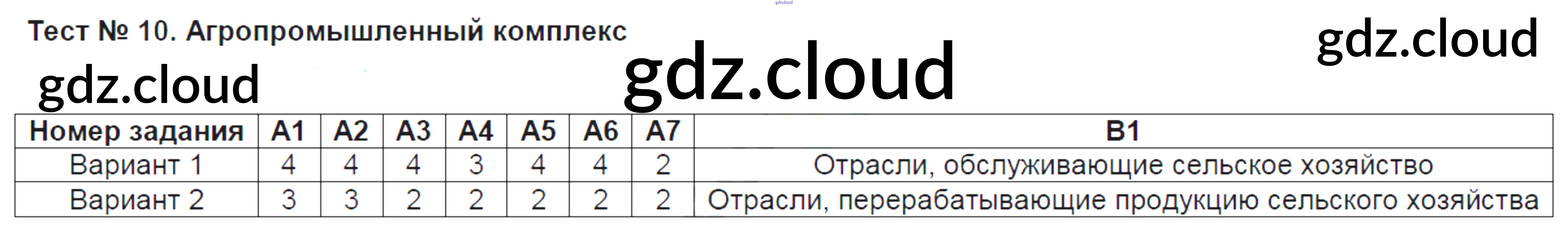 Ответ на задание Тест №10. Агропромышленный комплекс Контрольно-измерительные материалы (КИМ) География за 9 (девятый) класс Жижина 2017