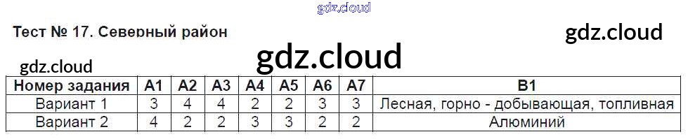 Ответ на задание Тест №17. Северный район Контрольно-измерительные материалы (КИМ) География за 9 (девятый) класс Жижина 2017