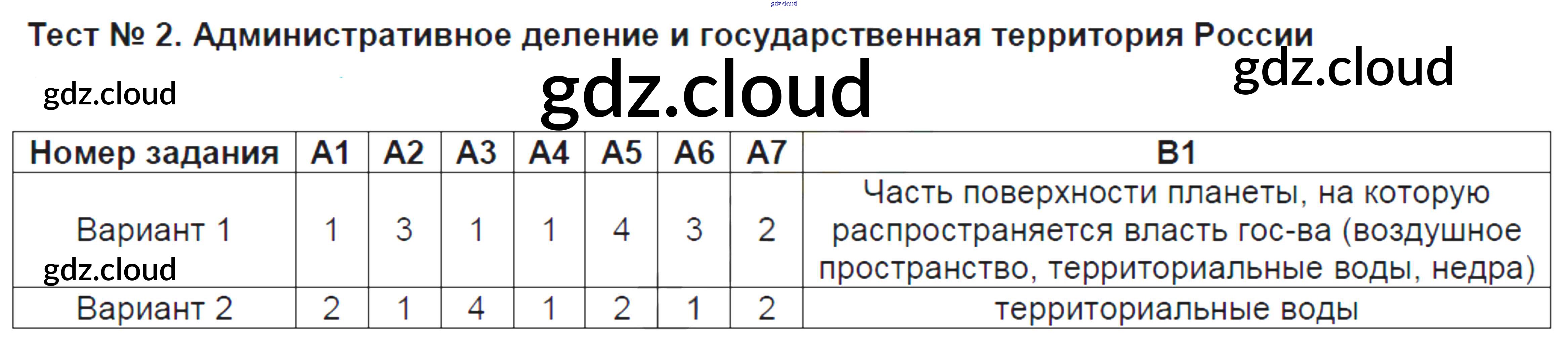 Ответ на задание Тест №2. Административное деление и государственная территория России Контрольно-измерительные материалы (КИМ) География за 9 (девятый) класс Жижина 2017