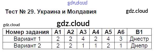 Ответ на задание Тест №29. Украина и Молдавия Контрольно-измерительные материалы (КИМ) География за 9 (девятый) класс Жижина 2017