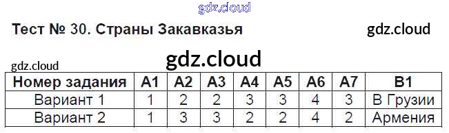 Ответ на задание Тест №30. Страны Закавказья Контрольно-измерительные материалы (КИМ) География за 9 (девятый) класс Жижина 2017