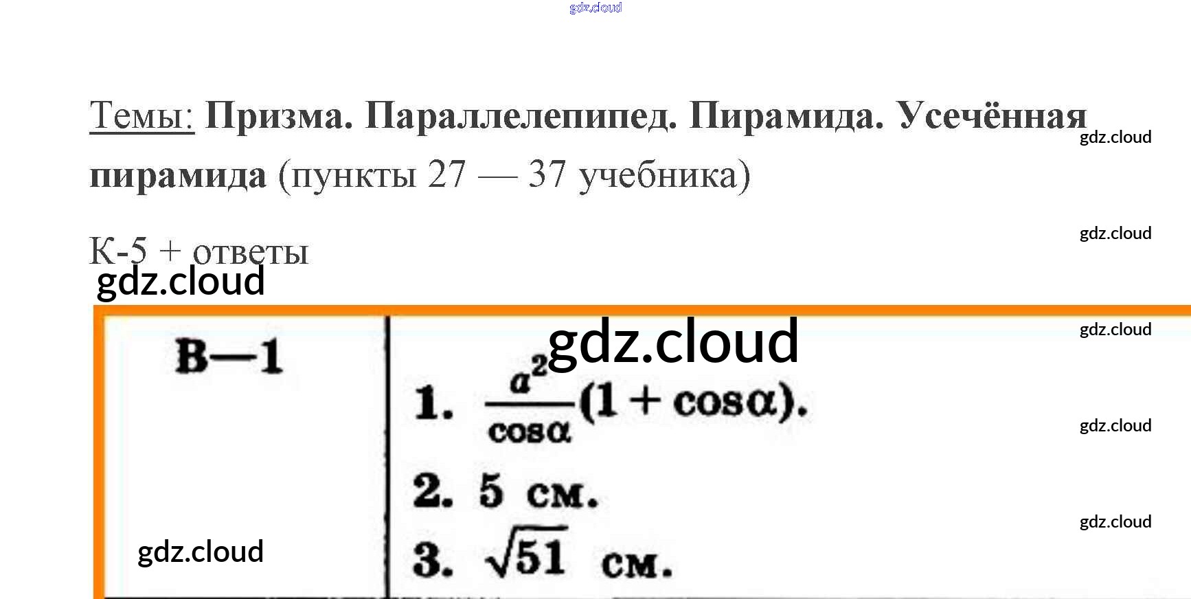 Ответы к КР 5 (Варианты) по Геометрии 10 класс Контрольные работы Иченская Базовый уровень Просвещение