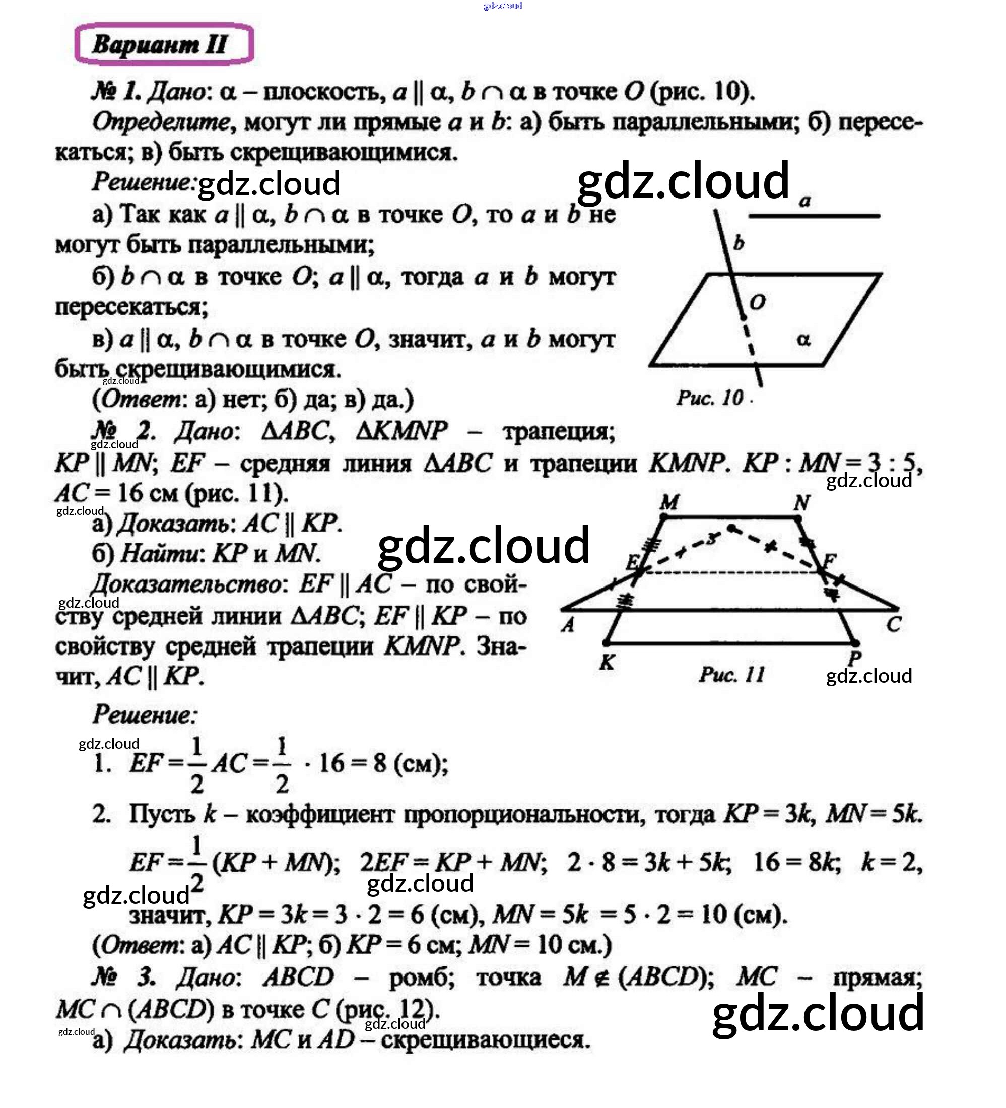 Уровень 2 (Варианты) Ответы к КР 1 по Геометрии 10 класс Поурочные разработки Крупина Базовый и профильный уровни ВАКО