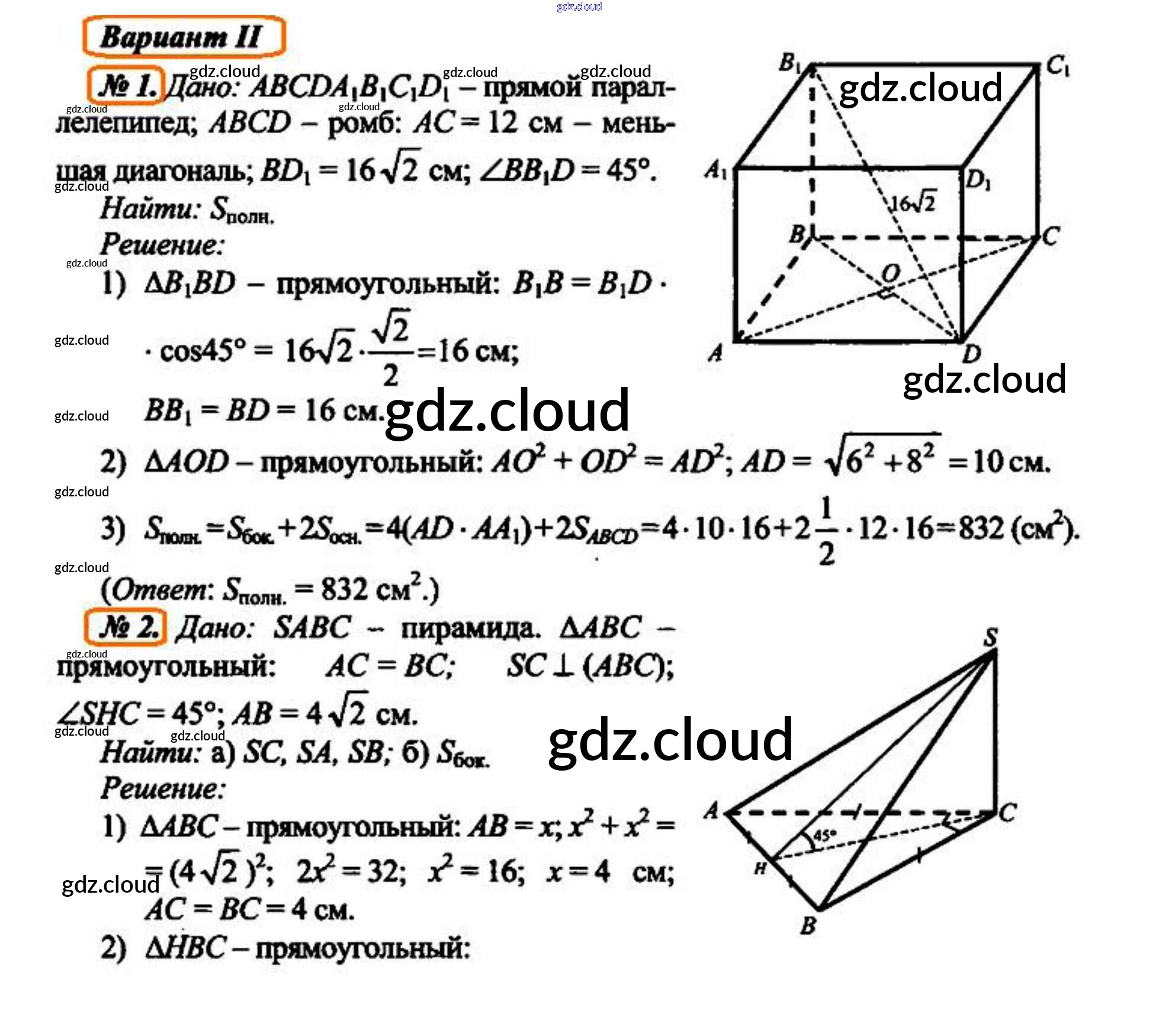 Уровень 2 (Варианты) Ответы к КР 4 по Геометрии 10 класс Поурочные разработки Крупина Базовый и профильный уровни ВАКО