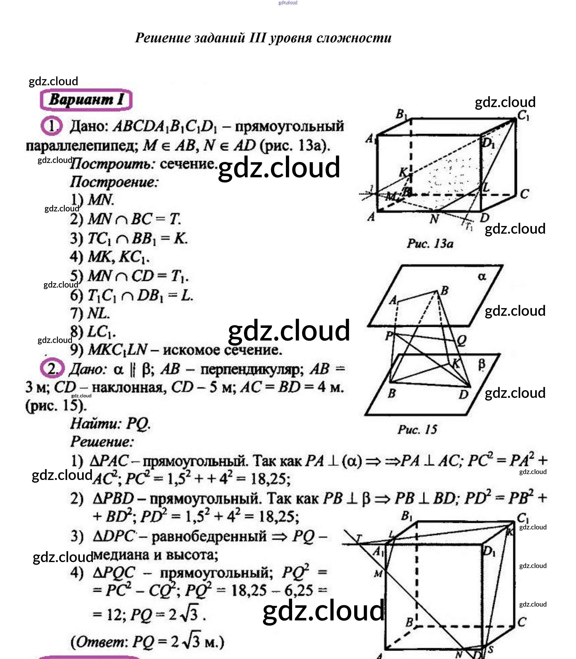Уровень 3 (Варианты) Ответы к КР 2 по Геометрии 10 класс Поурочные разработки Крупина Базовый и профильный уровни ВАКО