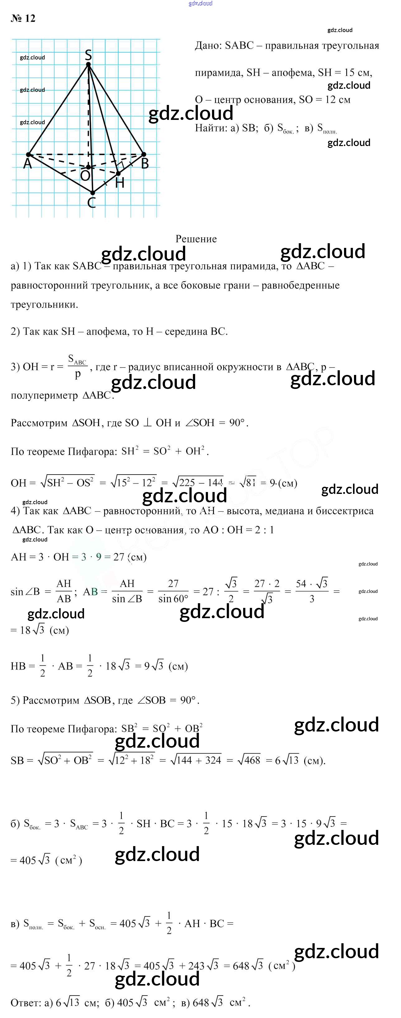 Ответ на задание 12 Учебник Геометрия за 10 (десятый) класс Латотин, Чеботаревский, Горбунова 2020 онлайн и без номера телефона.