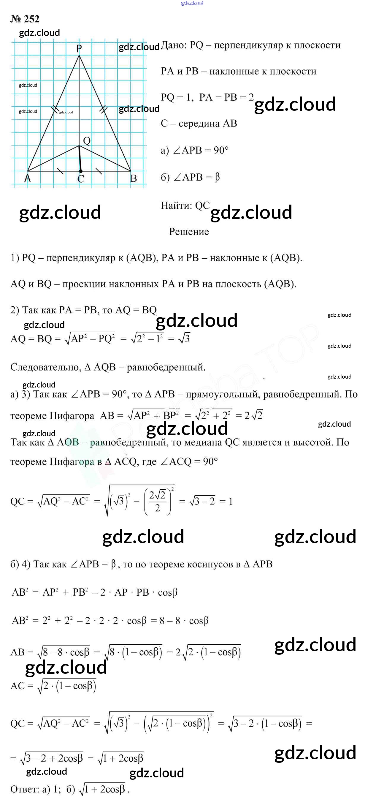Ответ на задание 252 Учебник Геометрия за 10 (десятый) класс Латотин, Чеботаревский, Горбунова 2020 онлайн и без номера телефона.