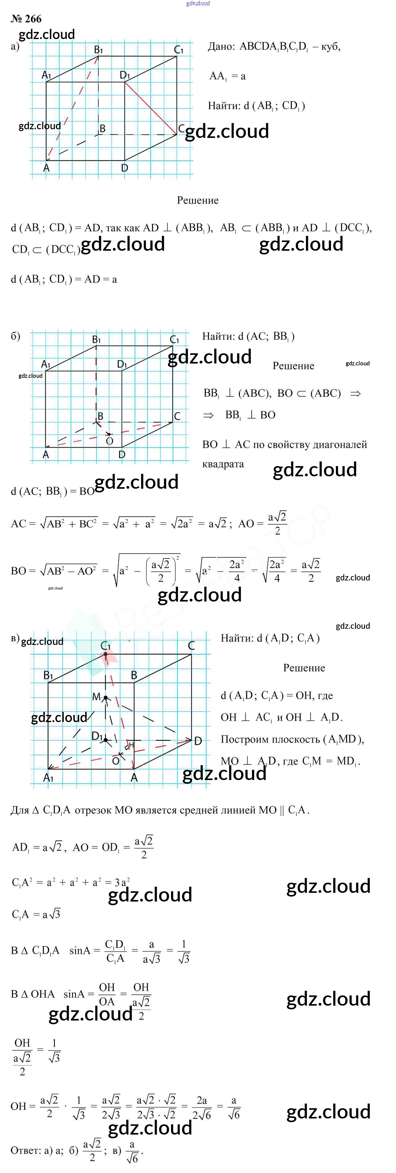 Ответ на задание 266 Учебник Геометрия за 10 (десятый) класс Латотин, Чеботаревский, Горбунова 2020 онлайн и без номера телефона.