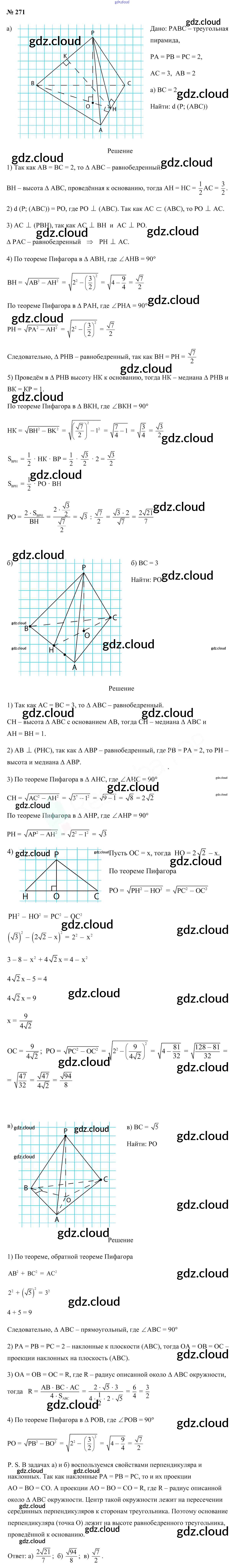 Ответ на задание 271 Учебник Геометрия за 10 (десятый) класс Латотин, Чеботаревский, Горбунова 2020 онлайн и без номера телефона.