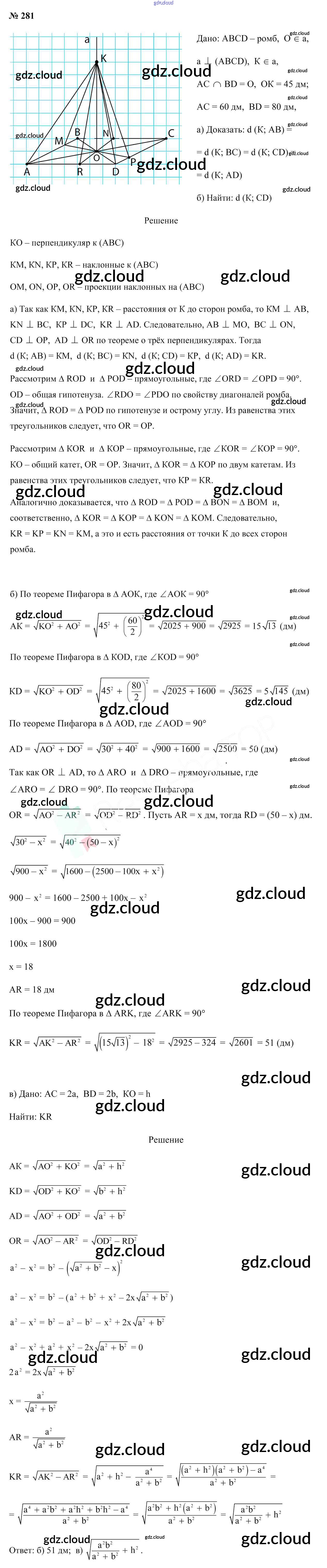 Ответ на задание 281 Учебник Геометрия за 10 (десятый) класс Латотин, Чеботаревский, Горбунова 2020 онлайн и без номера телефона.