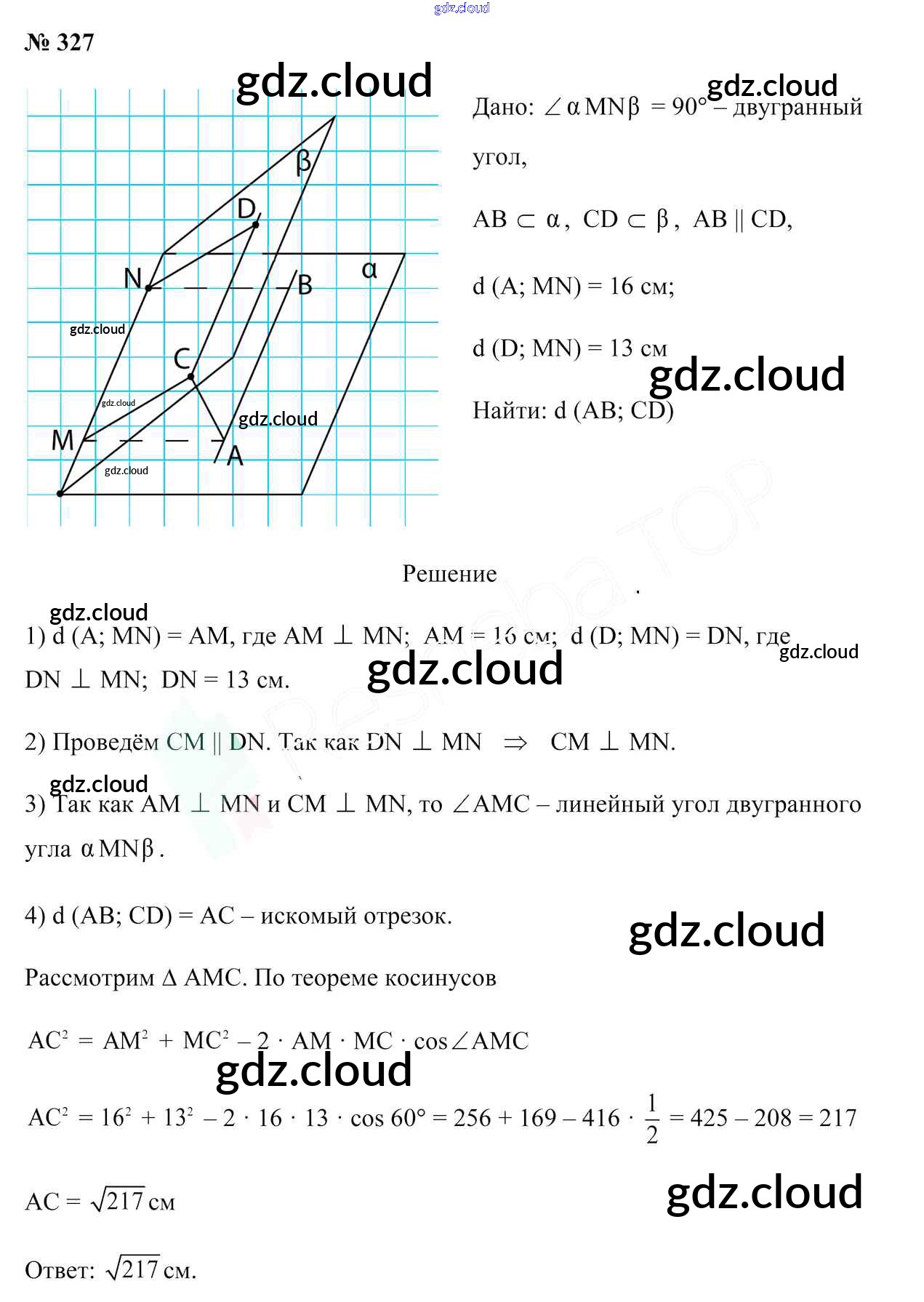 Ответ на задание 327 Учебник Геометрия за 10 (десятый) класс Латотин, Чеботаревский, Горбунова 2020 онлайн и без номера телефона.