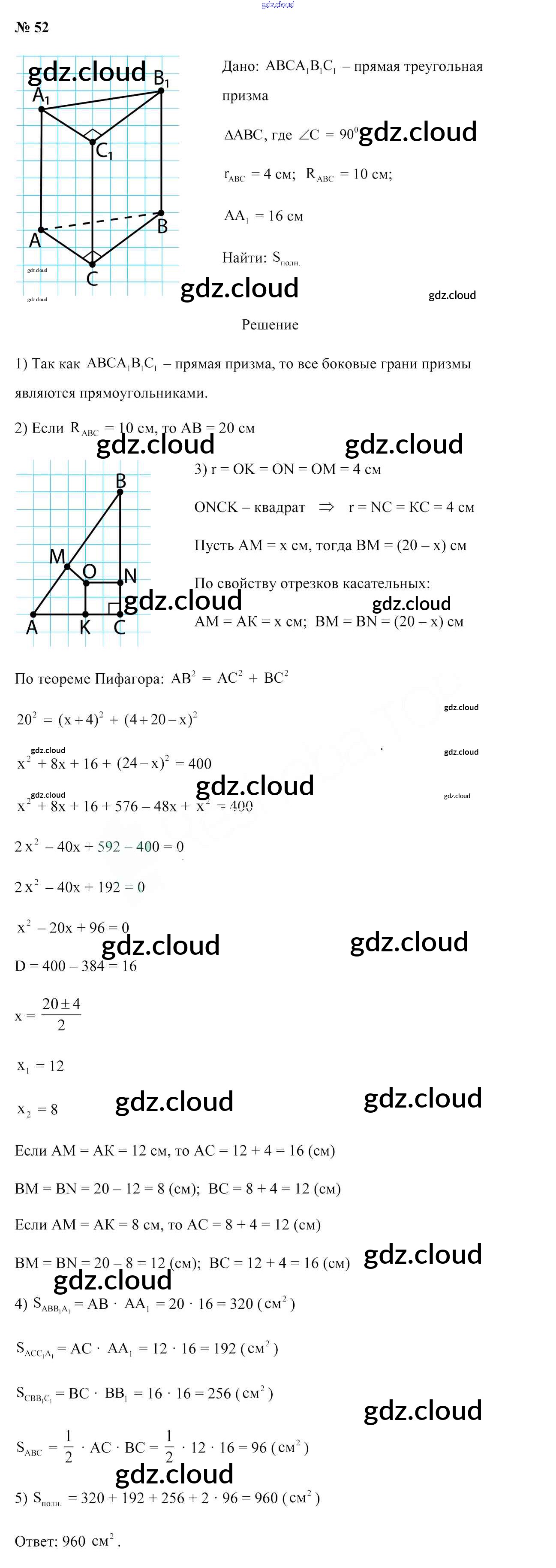 Ответ на задание 52 Учебник Геометрия за 10 (десятый) класс Латотин, Чеботаревский, Горбунова 2020 онлайн и без номера телефона.