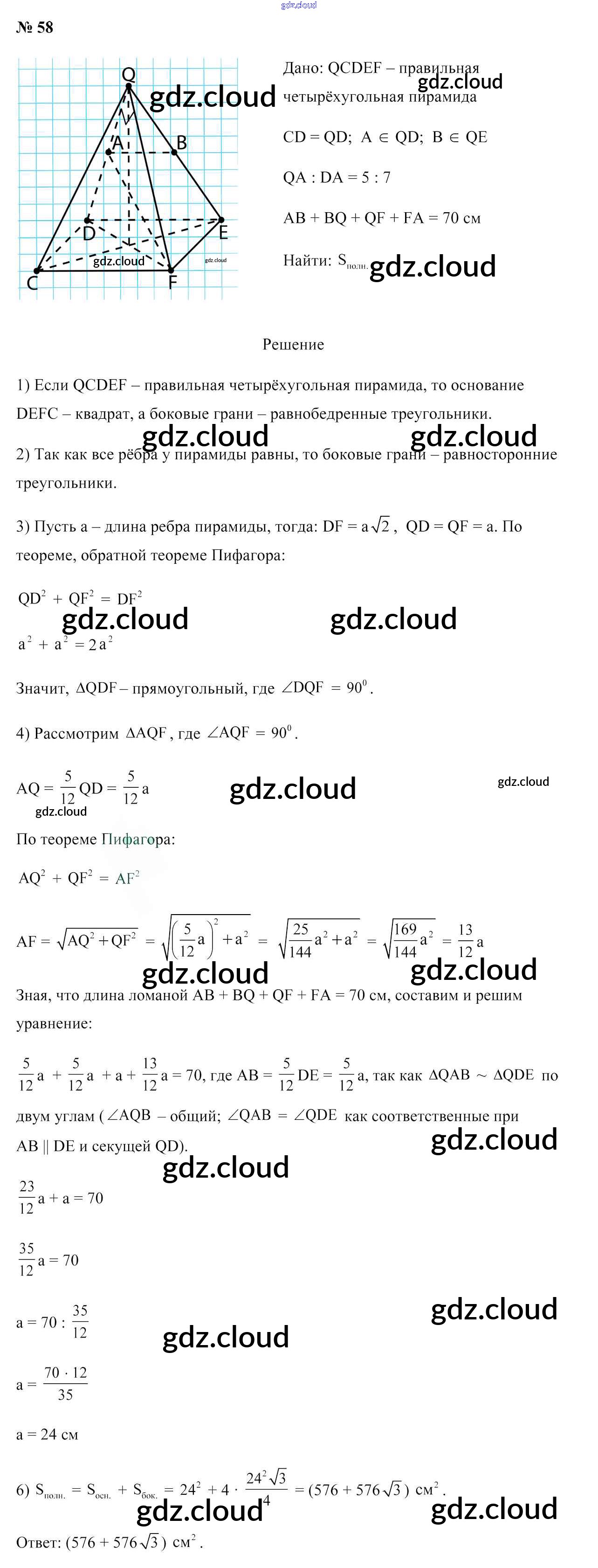 Ответ на задание 58 Учебник Геометрия за 10 (десятый) класс Латотин, Чеботаревский, Горбунова 2020 онлайн и без номера телефона.