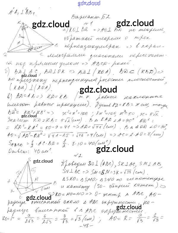 КР-2. Варианты Контрольные работы по Геометрии 10 класс Самостоятельные и контрольные работы Ершова Илекса