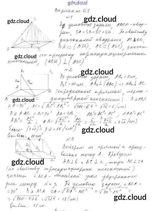 СР-12. Варианты Самостоятельные работы по Геометрии 10 класс Самостоятельные и контрольные работы Ершова Илекса
