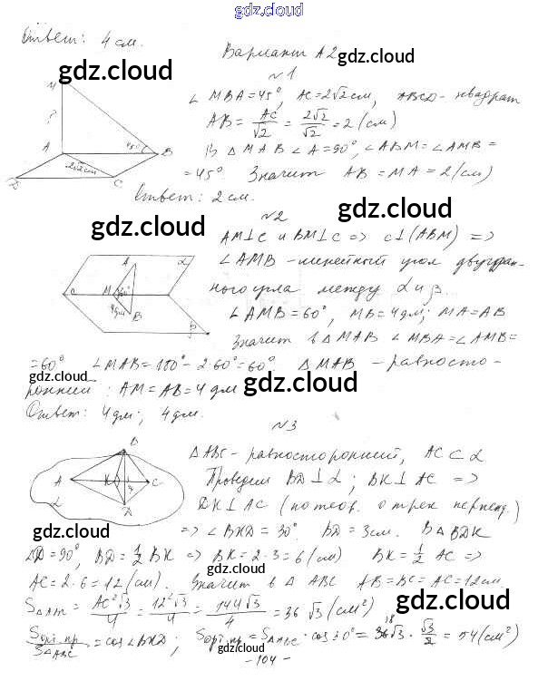 Ответ на задание 2 Самостоятельные и контрольные работы Геометрия за 10 (десятый) класс Ершова, Голобородько 2014