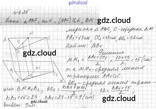 Ответ на задание 4.25 Учебник Геометрия за 10 (десятый) класс Мерзляк, Номировский, Полонский, Якир Алгоритм успеха Базовый уровень 2017