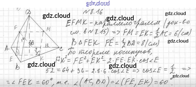 Ответ на задание 8.16 Учебник Геометрия за 10 (десятый) класс Мерзляк, Номировский, Полонский, Якир Алгоритм успеха Базовый уровень 2017