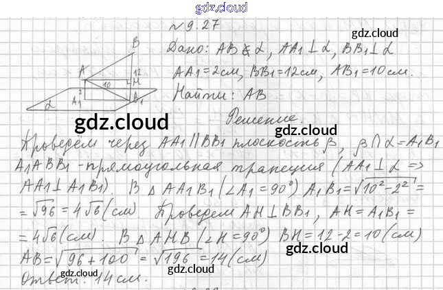 Ответ на задание 9.27 Учебник Геометрия за 10 (десятый) класс Мерзляк, Номировский, Полонский, Якир Алгоритм успеха Базовый уровень 2017