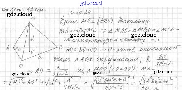 Ответ на задание 10.24 Учебник Геометрия за 10 (десятый) класс Мерзляк, Номировский, Полонский, Якир Алгоритм успеха Базовый уровень 2017