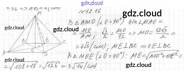 Ответ на задание 12.16 Учебник Геометрия за 10 (десятый) класс Мерзляк, Номировский, Полонский, Якир Алгоритм успеха Базовый уровень 2017