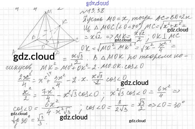 Ответ на задание 13.38 Учебник Геометрия за 10 (десятый) класс Мерзляк, Номировский, Полонский, Якир Алгоритм успеха Базовый уровень 2017