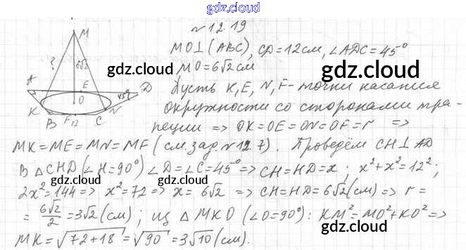 Ответ на задание 12.19 Учебник Геометрия за 10 (десятый) класс Мерзляк, Номировский, Поляков Алгоритм успеха Углубленный уровень 2021