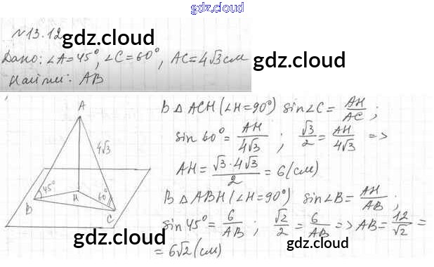 Ответ на задание 13.12 Учебник Геометрия за 10 (десятый) класс Мерзляк, Номировский, Поляков Алгоритм успеха Углубленный уровень 2021