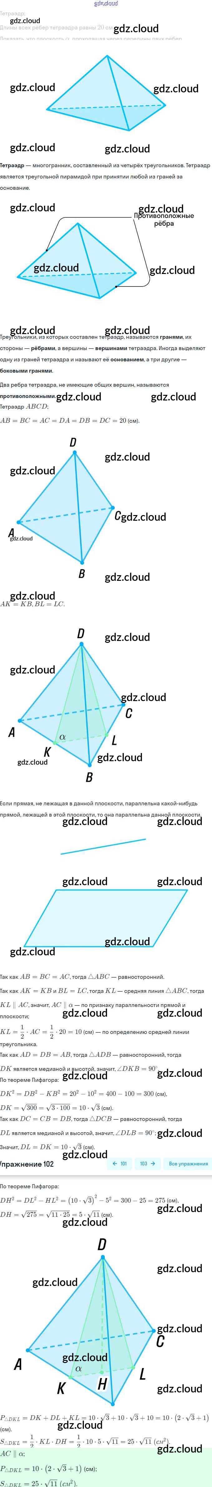 Ответ на задание 102 Учебник Геометрия  за 10, 11 (десятый, одиннадцатый) класс Атанасян, Бутузов, Кадомцев, Киселева, Позняк  Базовый и углубленный уровень 2015, 2023
