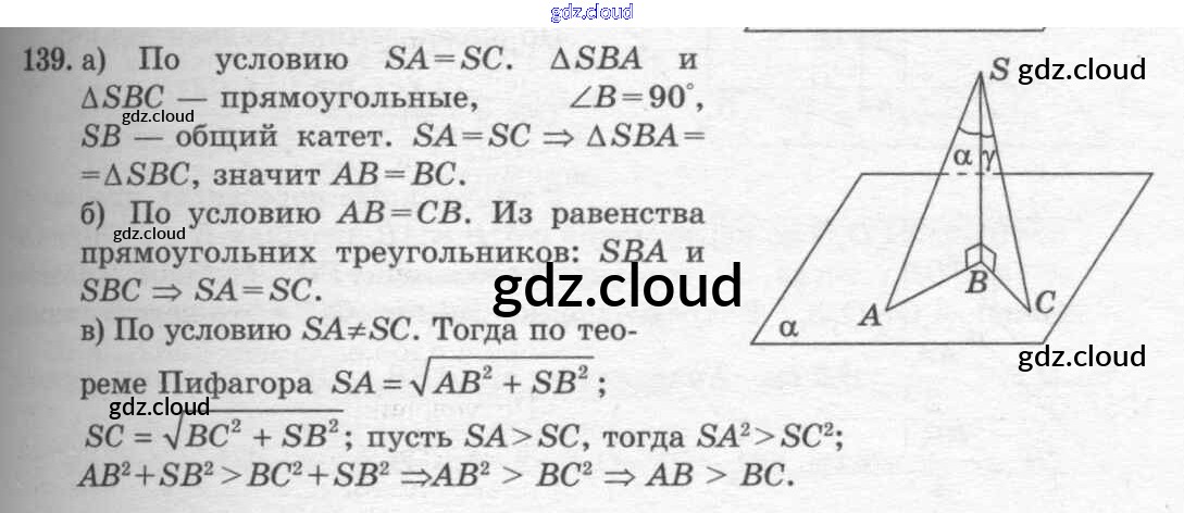 Ответ на задание 139 Учебник Геометрия  за 10, 11 (десятый, одиннадцатый) класс Атанасян, Бутузов, Кадомцев, Киселева, Позняк  Базовый и углубленный уровень 2015, 2023