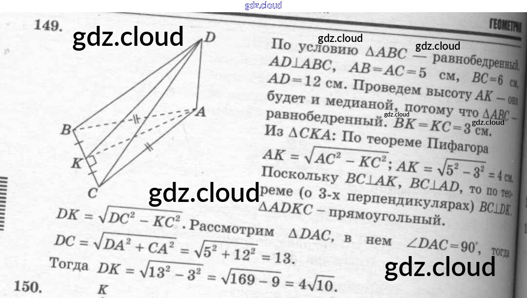 Ответ на задание 149 Учебник Геометрия  за 10, 11 (десятый, одиннадцатый) класс Атанасян, Бутузов, Кадомцев, Киселева, Позняк  Базовый и углубленный уровень 2015, 2023