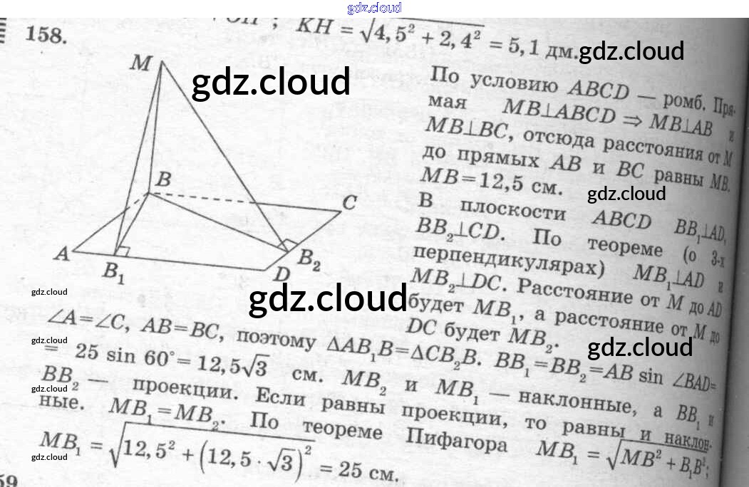 Ответ на задание 158 Учебник Геометрия  за 10, 11 (десятый, одиннадцатый) класс Атанасян, Бутузов, Кадомцев, Киселева, Позняк  Базовый и углубленный уровень 2015, 2023