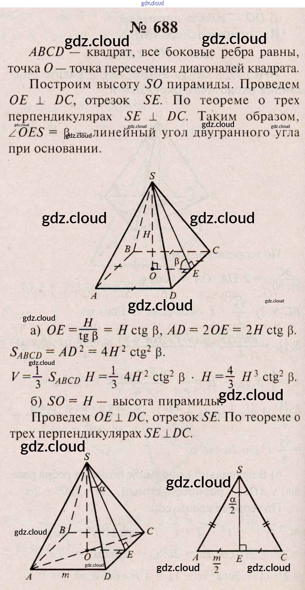 Ответ на задание 688 Учебник Геометрия  за 10, 11 (десятый, одиннадцатый) класс Атанасян, Бутузов, Кадомцев, Киселева, Позняк  Базовый и углубленный уровень 2015, 2023
