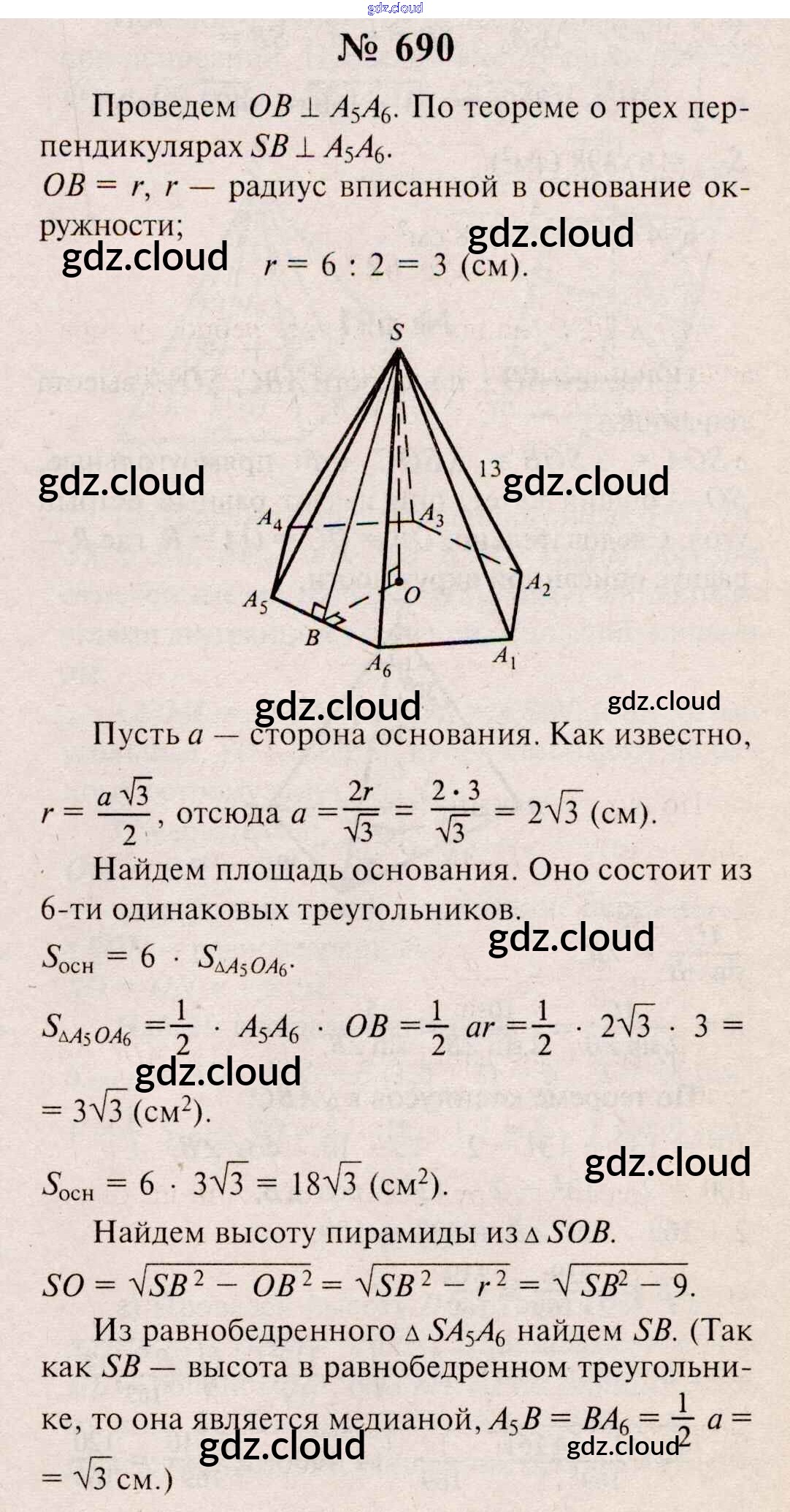 Ответ на задание 690 Учебник Геометрия  за 10, 11 (десятый, одиннадцатый) класс Атанасян, Бутузов, Кадомцев, Киселева, Позняк  Базовый и углубленный уровень 2015, 2023