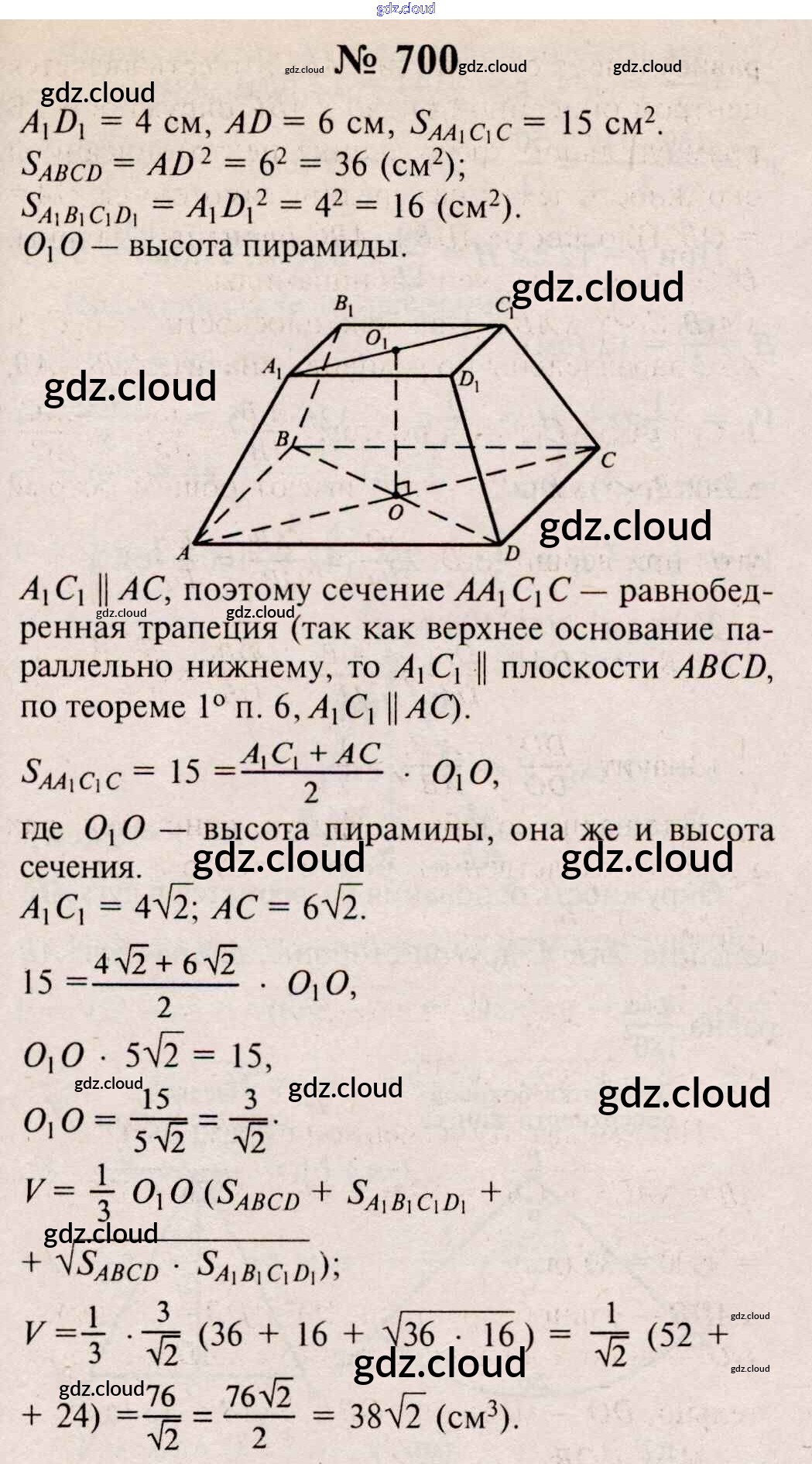 Ответ на задание 700 Учебник Геометрия  за 10, 11 (десятый, одиннадцатый) класс Атанасян, Бутузов, Кадомцев, Киселева, Позняк  Базовый и углубленный уровень 2015, 2023