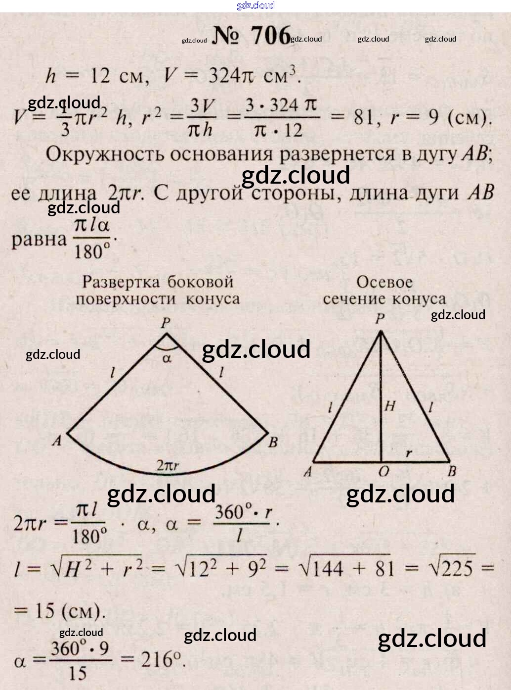Ответ на задание 706 Учебник Геометрия  за 10, 11 (десятый, одиннадцатый) класс Атанасян, Бутузов, Кадомцев, Киселева, Позняк  Базовый и углубленный уровень 2015, 2023