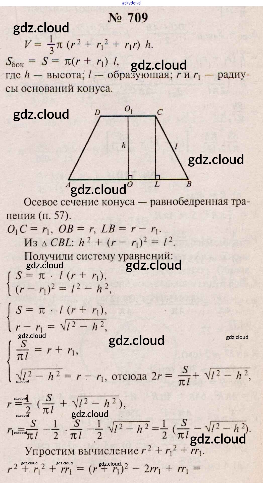 Ответ на задание 709 Учебник Геометрия  за 10, 11 (десятый, одиннадцатый) класс Атанасян, Бутузов, Кадомцев, Киселева, Позняк  Базовый и углубленный уровень 2015, 2023