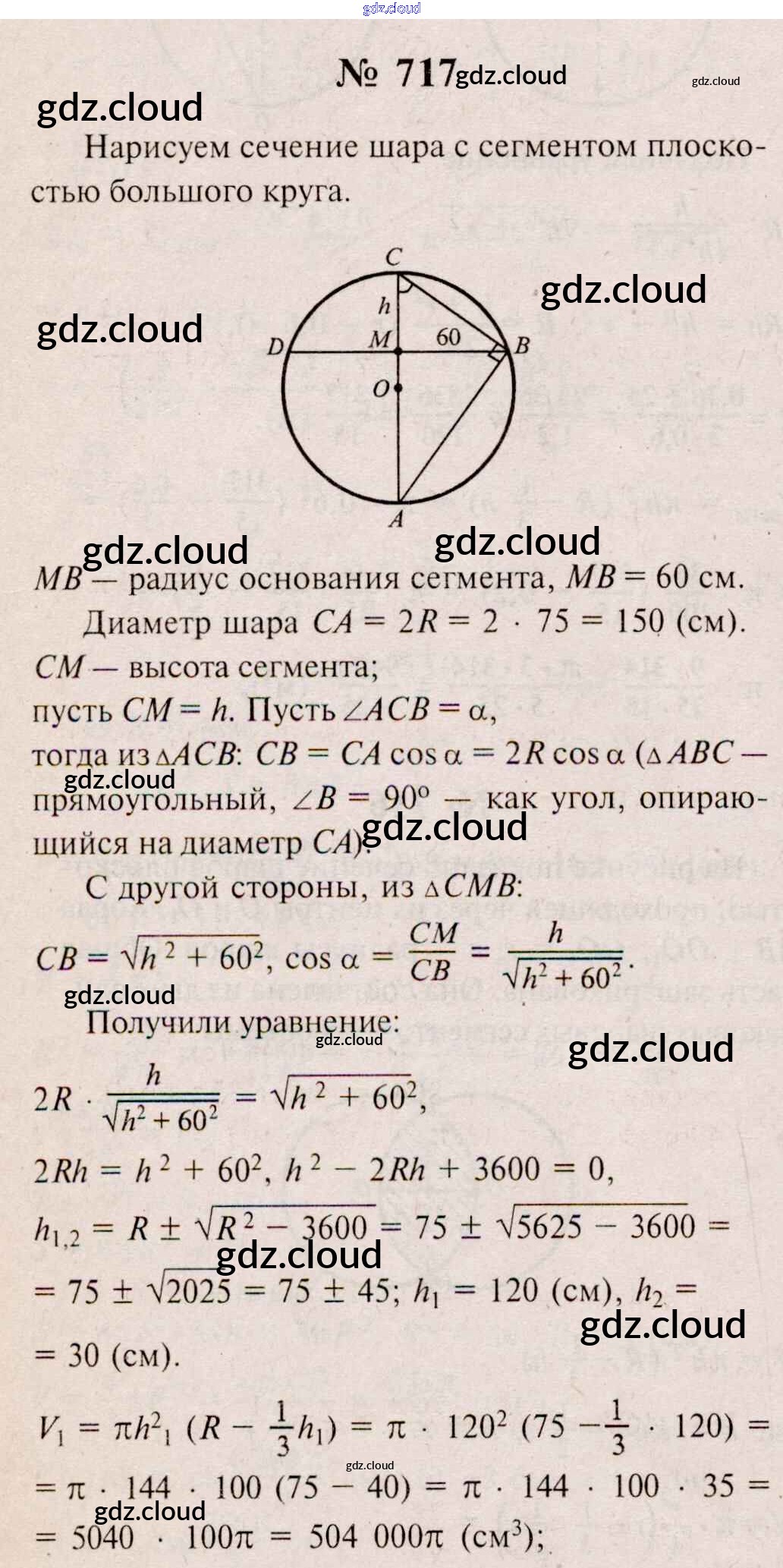 Ответ на задание 717 Учебник Геометрия  за 10, 11 (десятый, одиннадцатый) класс Атанасян, Бутузов, Кадомцев, Киселева, Позняк  Базовый и углубленный уровень 2015, 2023