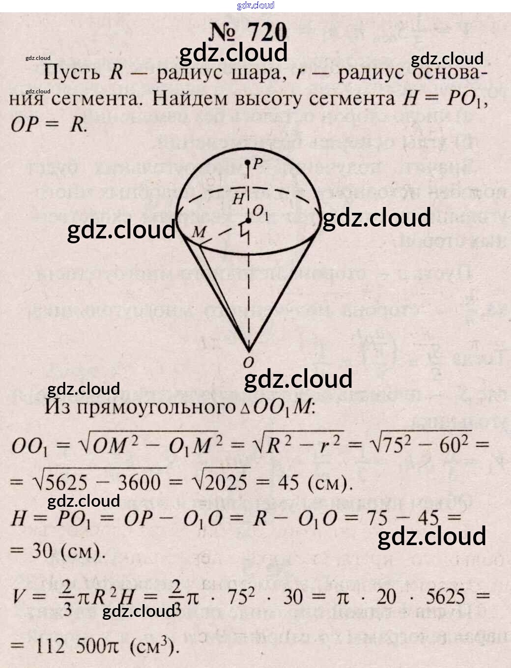 Ответ на задание 720 Учебник Геометрия  за 10, 11 (десятый, одиннадцатый) класс Атанасян, Бутузов, Кадомцев, Киселева, Позняк  Базовый и углубленный уровень 2015, 2023