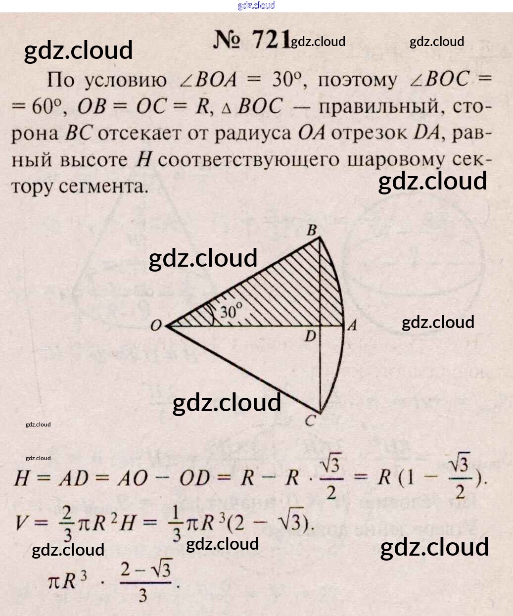 Ответ на задание 721 Учебник Геометрия  за 10, 11 (десятый, одиннадцатый) класс Атанасян, Бутузов, Кадомцев, Киселева, Позняк  Базовый и углубленный уровень 2015, 2023