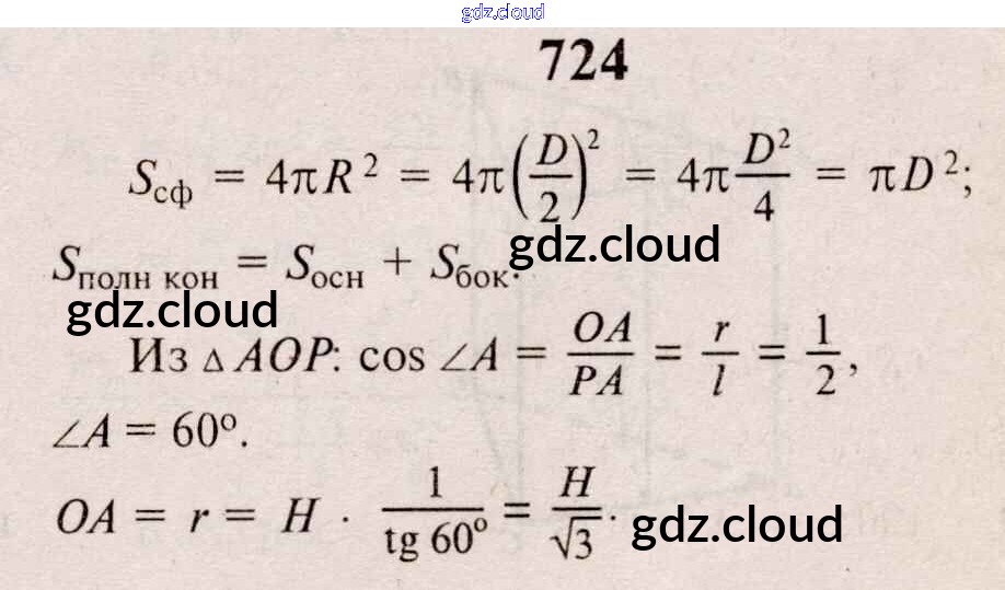 Ответ на задание 724 Учебник Геометрия  за 10, 11 (десятый, одиннадцатый) класс Атанасян, Бутузов, Кадомцев, Киселева, Позняк  Базовый и углубленный уровень 2015, 2023