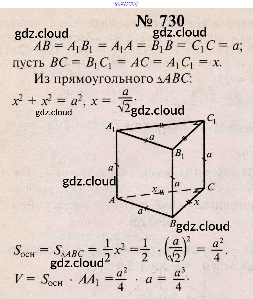 Ответ на задание 730 Учебник Геометрия  за 10, 11 (десятый, одиннадцатый) класс Атанасян, Бутузов, Кадомцев, Киселева, Позняк  Базовый и углубленный уровень 2015, 2023