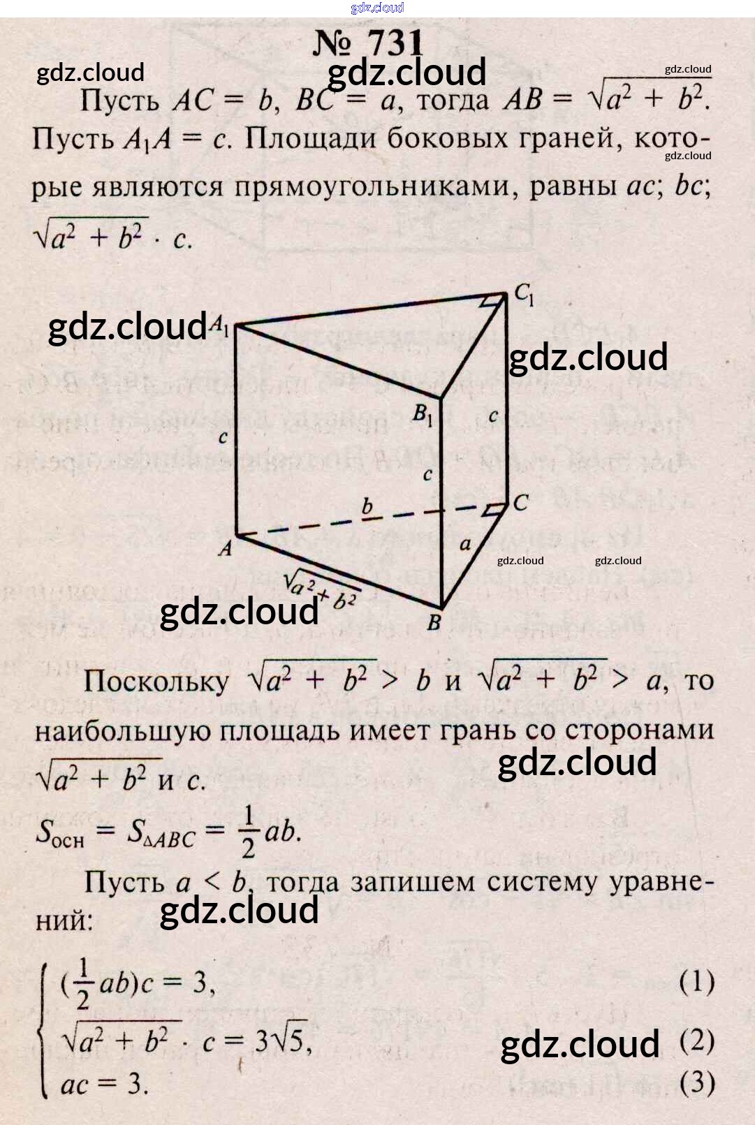 Ответ на задание 731 Учебник Геометрия  за 10, 11 (десятый, одиннадцатый) класс Атанасян, Бутузов, Кадомцев, Киселева, Позняк  Базовый и углубленный уровень 2015, 2023